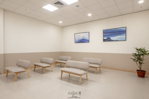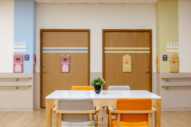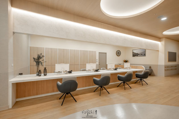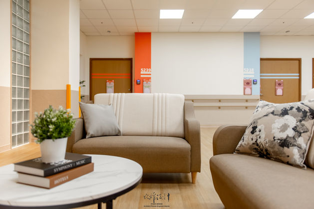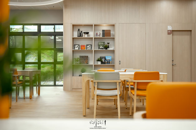 我們以圓弧取代銳角,讓每一次轉身都柔和而安全;以開放環形動線貫穿全區,串連迎賓、交誼、等候與休憩,讓空間自然流動,指引方向不受限制。