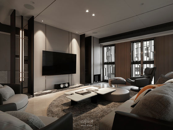 如同玄關一進門,一線之隔坐落在客廳的山峰牆透過「一曙光」緩緩亮起,為回家的人開啟第一道關心與問候,在回家的路上如同空間的轉彎處而有不同的端景牆,總能在一進一轉之間遇到不同的風景。